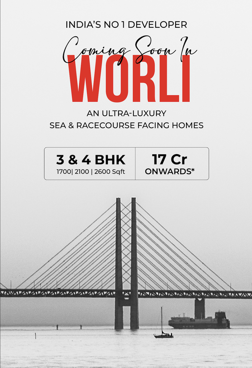 Experience elevated coastal living at New Launch Worli, Mumbai’s most iconic upcoming landmark that seamlessly blends architectural grandeur with timeless elegance. Soaring skyward with a 50+ storey structure across a sprawling 5-acre estate, this ultra-luxury marvel offers expansive 3, 4 & 5 BHK sea-view residences, thoughtfully designed with private decks and bespoke interiors. With panoramic views of the Arabian Sea and a rooftop observatory lounge, every element is curated to reflect a life steeped in sophistication.